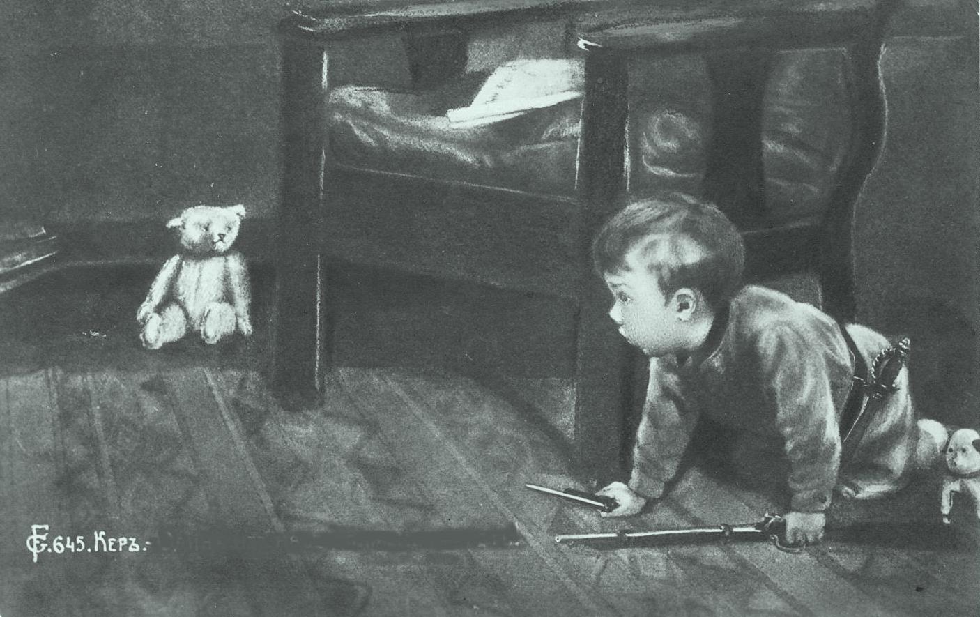 Vad säger pojken till björnen? (ryskt vykort från 1900-talets början)